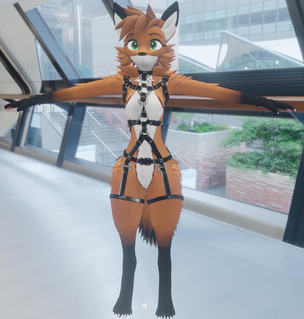 This is a high-quality, totally custom harness for my Foxipso Base (https://foxipso.gumroad.com/l/foxipso_base). It's highly detailed and looks fantastic up close, yet I've designed it such that when paired with my base, you'll still be Medium performance in VRChat! It works for both the default and vixen shapekeys on the base.
