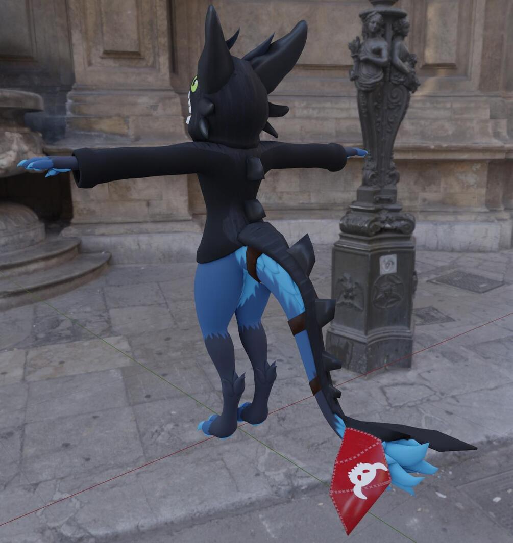 This is my signature Toothless hoodie for Nardoiri's excellent Nardoragon model! It features a hood-up hoodie with teeth and Toothless eyes, scale-like textures, and a long sweeping tail that's attached with buckles that tightly wrap around your Nardo's tail.