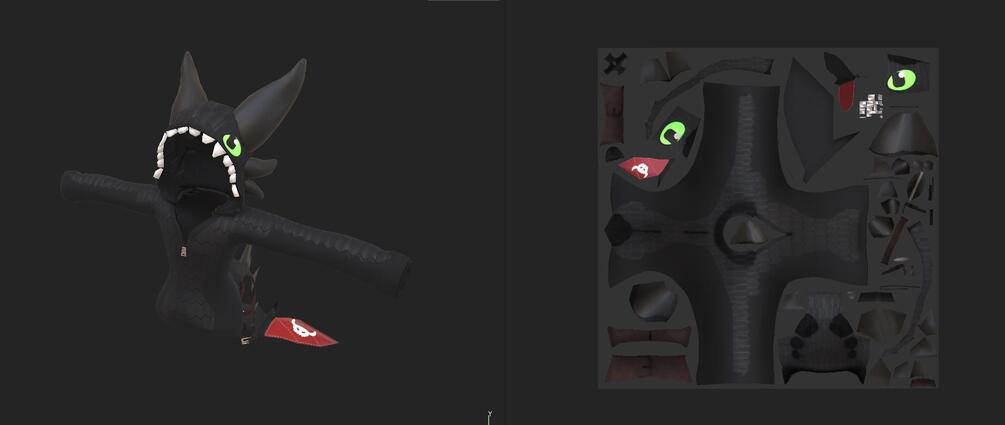 This is my signature Toothless hoodie for Nardoiri's excellent Nardoragon model! It features a hood-up hoodie with teeth and Toothless eyes, scale-like textures, and a long sweeping tail that's attached with buckles that tightly wrap around your Nardo's tail.