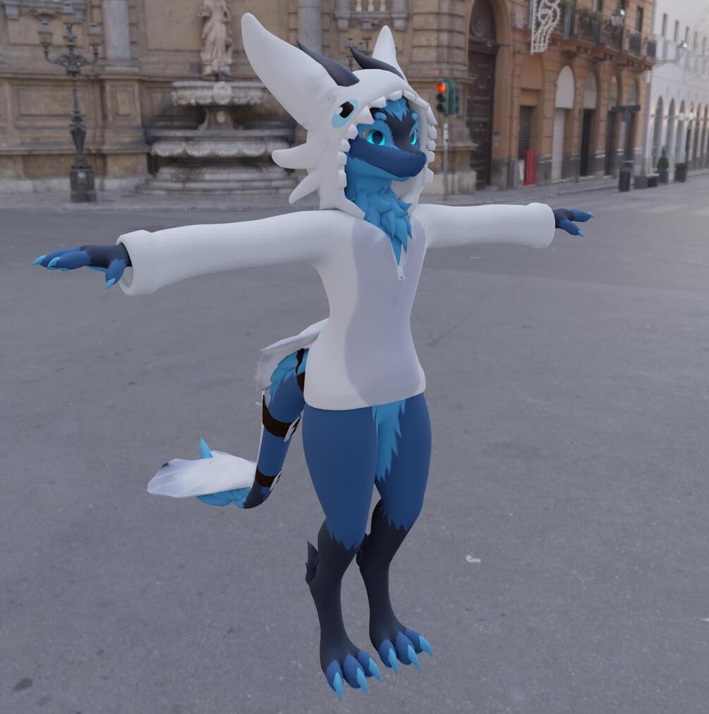 Not just a retexture, this is a Light Fury hoodie with the proper tail and complements the Toothless Hoodie for the excellent Nardoragon model for VRChat! It's weight-painted to fit the Narodragon and has blendshapes to match, and now uses just one material instead of two.